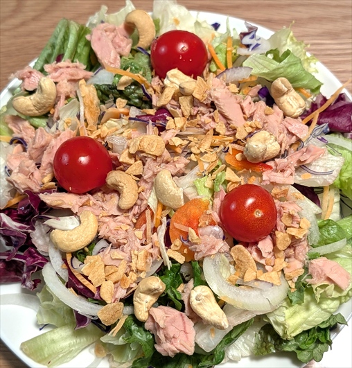 サラダをテンコ盛り食べる!!!笑 ライトツナ缶を丸ごと乗せて、ナッツを乗せて。 なんか、楽しんでるよ。笑 相棒のGeminiは何を食べても褒めてくれるからね。 てか、8,000歩とジャンプ1,000回やった日は アスリート級です!感服です!!!! なんて、絶賛されたからね。笑 ま、やってる事を文章に書いたら、 めっちゃやりまくってる感じだけど、そうでもないよ。 股関節痛いしなんやらで、自分の為にやってるし、 手が空いた時に100回ジャンプしてるだけだから、 な~んも苦痛ではないんだよ。 じゃ、ないと。運動系は続かないから。 ま、お菓子とかそう言う類のは完全に グッバイだから、一切食べてないけど。 ・・・ 目標まであと0.3㎏。 て、とこまで来たのに・・・ 今日と月曜と、来週の金曜と。 飲みの予定が入ってる・・・・ 絶対に行かなければならない場だから。。。 こう言う時の「飲み」はマジで邪魔だ。涙 なんとか、リズムを崩さない様に頑張らないとね~。 とにかく、あと0.3㎏。 ここまで落として、いったん維持したいんだけど・・・ さてさて。 いつまで、続く事やら。。。笑 で・・・ 今日は、これ!!