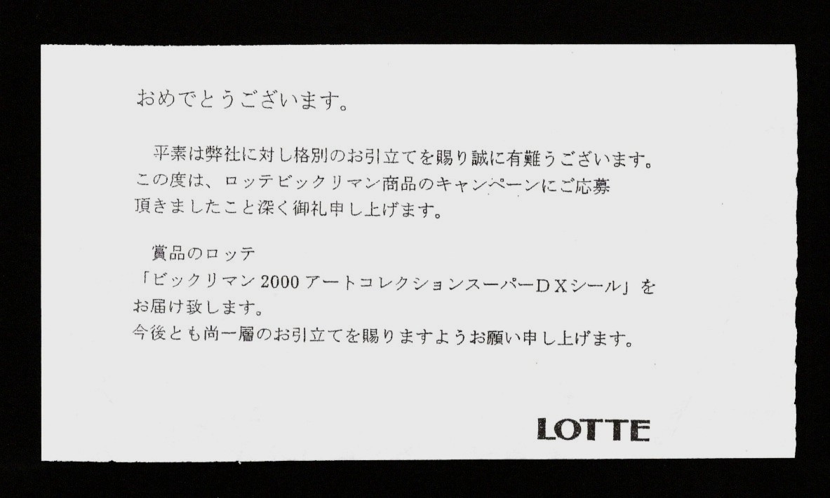 ※当選通知は三つ折りに折り畳んだ跡と、